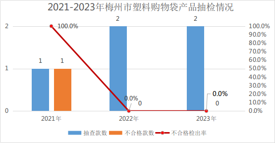 圖2 2021-2023年梅州市塑料購物袋產品抽檢情況