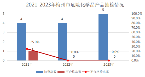 圖5 2021-2023年梅州市危險化學品產品抽檢情況