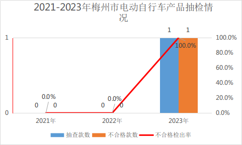 圖6 2021-2023年梅州市電動自行車產品抽檢情況