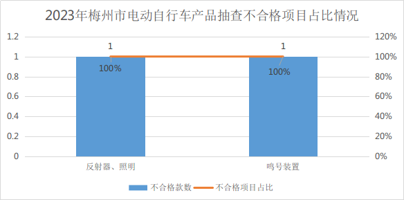 本次抽查重點對車速限值、製動性能(幹態)、整車質量、結構、車速提示音、淋水涉水性能、反射器、照明和鳴號裝置、電氣裝置、充電器與蓄電池、防火性能等10個項目進行檢驗。不合格項目為反射器、照明和鳴號裝置等2個項目。