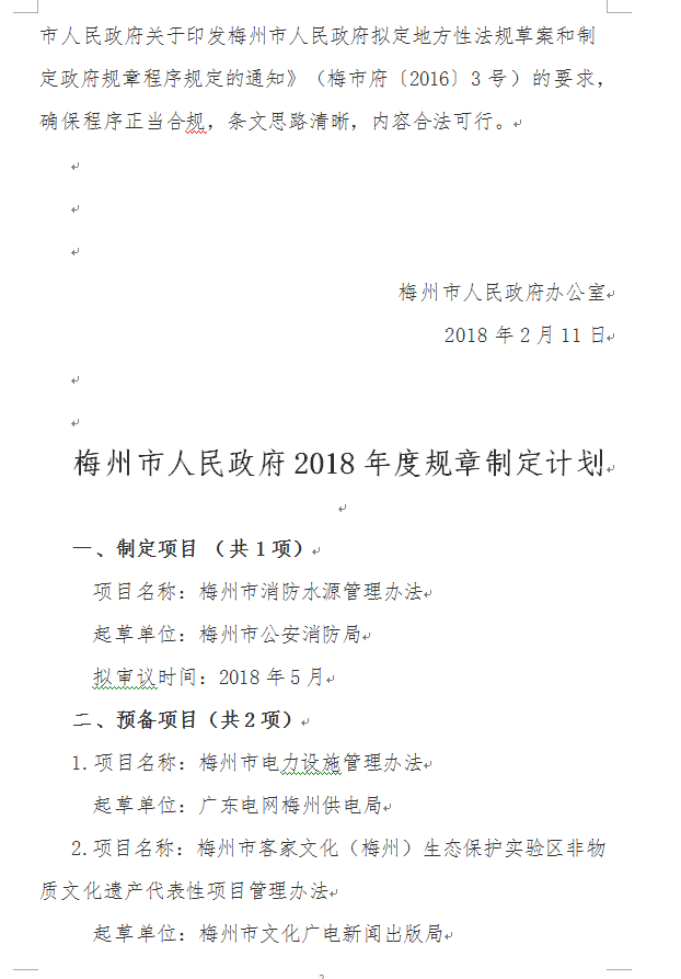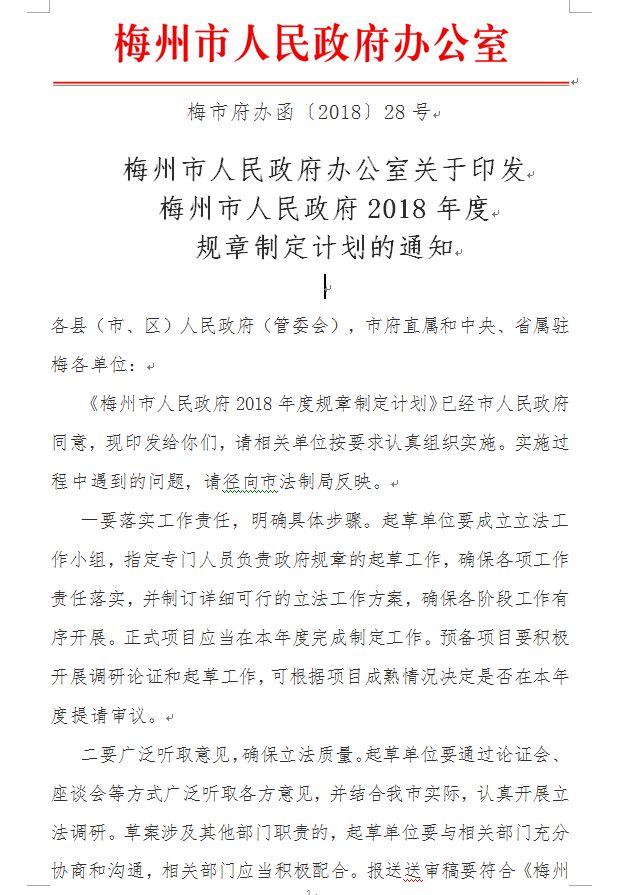 梅州市人民政府門戶網站 梅州市司法局 公示公告 yabo88 關於印發 梅州市人民政府2018年度 規章製定計劃的通知