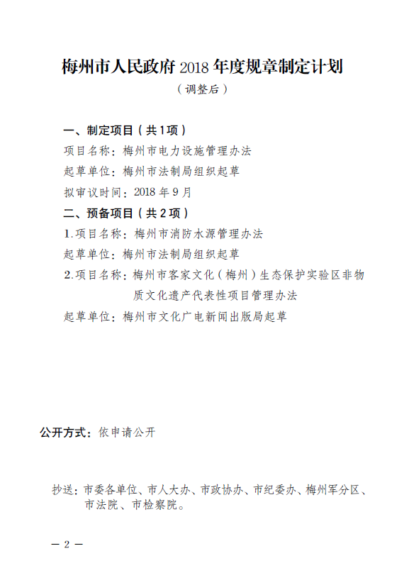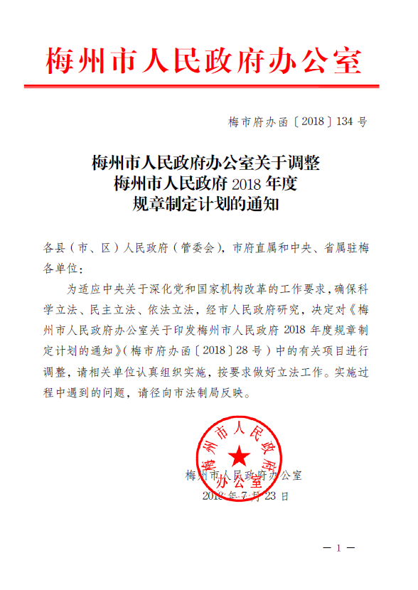 梅州市人民政府門戶網站 梅州市司法局 公示公告 yabo88 關於調整梅州市人民政府2018年度規章製定計劃的通知
