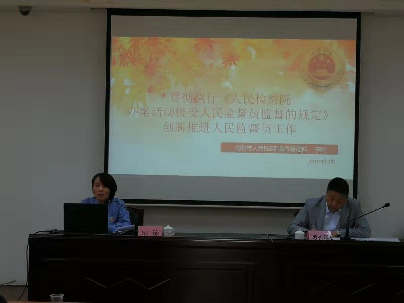 為了進一步加強我市人民監督員隊伍建設,提高人民監督員的履職能力,提升案件監督的質量水平,更好地維護社會公平和正義。我局於10月29日在梅州市委黨校舉辦梅州市2019年度省、市兩級人民監督員業務專項培訓班,全市省、市兩級人民監督員和市局相關科室人員共40多人參加了培訓,市司法局黨組成員、副局長羅永科、市檢察院檢察官宋玲及人促科負責人等出席會議。會上,葉仁基局長作了書麵講話,肯定了我市人民監督員過去的工作取得了較好的法律效果和社會效果,結合當前人民監督員工作的新形勢和新任務,強調要念好“悟、學、幹”三字訣,提出三點意見:一是“悟”字為要,在築牢思想根基上展新貌;二是“學”字為先,在提高綜合素質上下功夫;三是“幹”字為重,在提升履職能力上見實效。