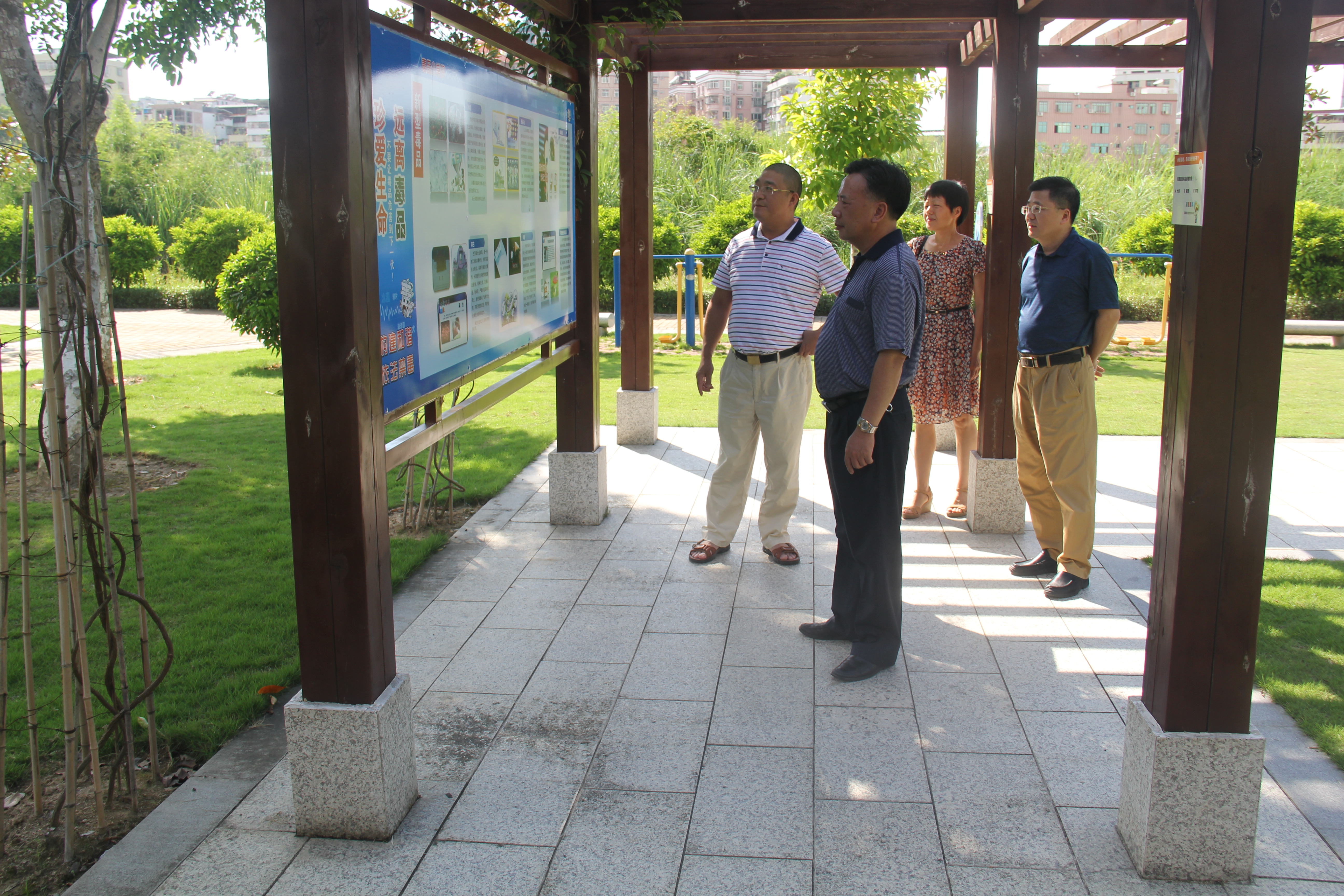 下午頂著炎炎烈日參觀了五華縣禁毒文化主題公園,通過實地參觀、聽取介紹等方式,全麵了解了公園內各專欄展示的毒品種類、揭示毒品危害、防範毒品侵害等知識;隨後又直奔五華縣司法局與班子成員進行座談,座談會上,五華縣司法局黨組書記、局長劉銳鋒簡要彙報了該局重點打造“四大高地”的工作情況和存在問題及建議,葉仁基局長聽取彙報後充分肯定了五華縣的司法行政工作取得的成績,認為五華縣司法局工作有思路、有舉措、有辦法、有特色、有創新,並提出了六點建議:一是抓好政治建設、二是抓好業務建設、三是抓好廉政建設、四是抓好紀律作風建設、六是抓好幹部職工八小時以外活動的監督管理;並要求公平公正地做好當前公務員職務與職級並行工作和嚴格落實迎大慶的值班值守工作,確保司法行政各項工作安全穩定。
