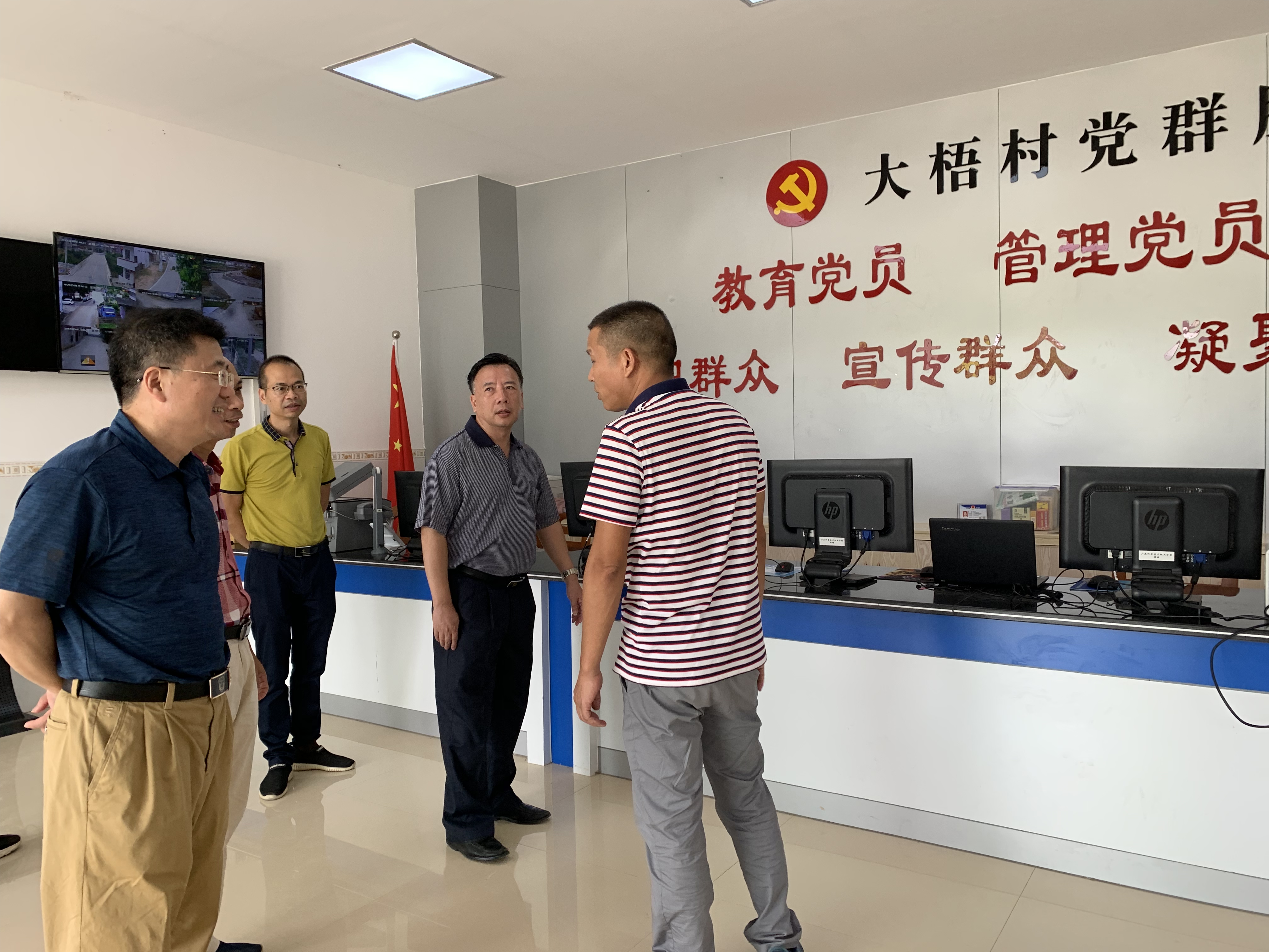 葉仁基同誌一行上午先是到五華縣龍村鎮留佘村和大梧村看望了市司法局2名駐村黨建指導員,並分別與留佘村和大梧村“兩委”、省駐村工作隊進行了座談交流,全麵了解了留佘村和大梧村新農村建設、黨員建設、精準扶貧等各項工作,並表態願在力所能及範圍內為村黨建工作給予幫扶;同時葉仁基同誌要求2名駐村黨建指導員要切實發揮自己應有作用,配合村支“兩委”抓好黨建工作,同村支“兩委”一班人一起想辦法、謀出路確保各項工作落到實處。會後,葉仁基同誌還實地考察了正在修複的留佘村人民會堂,正在改造的留佘小學學校飯堂以及留佘村和大梧村黨群服務中心和公共法律服務站等。