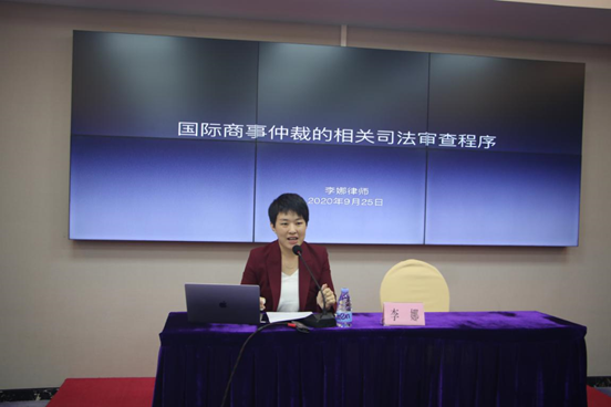 培訓班上,李娜律師以《國際商事仲裁的相關司法審查程序》為題,從司法審查程序概覽、確認仲裁協議效力程序、撤銷仲裁裁決程序和不予執行仲裁裁決程序四個方麵講授,讓大家對國際商事仲裁的相關司法審查程序有了更深入的了解。