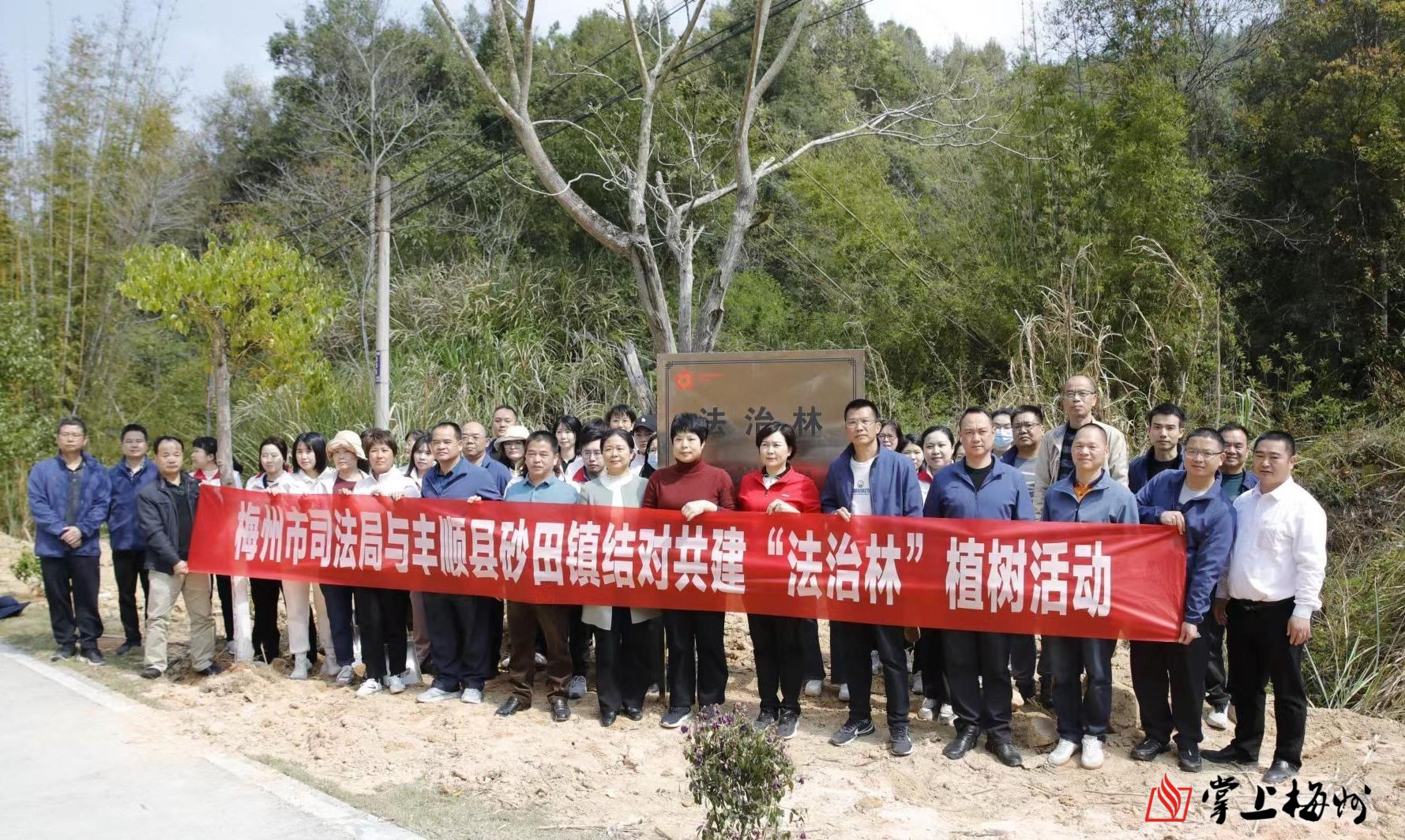 3月8日上午,梅州市司法局局長徐婉玲帶隊到掛點的豐順縣砂田鎮開展植樹活動,以實際行動響應並踐行政法機關與鎮村結對共建“法治林”行動,紮實推進綠美梅州生態建設。市司法局幹部職工以及豐順縣司法局、砂田鎮政府幹部職工共60多人參加活動。
