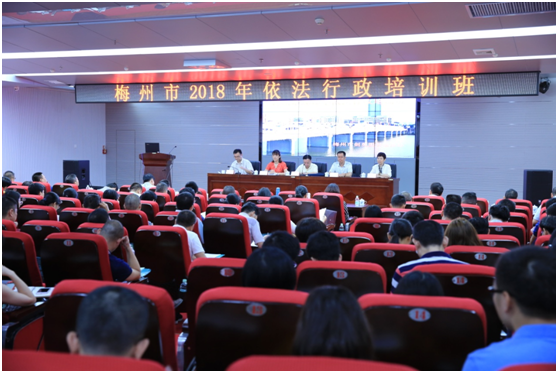 為進一步提升我市政府法製工作人員、市直單位行政執法人員的業務水平和依法行政的能力,全麵推進我市依法行政和法治政府建設工作,9月11日,我局在市劍英圖書館舉辦梅州市2018年依法行政培訓班。市、縣政府法製機構工作人員和市直單位法製業務人員、市直新申領行政執法證人員共230多人參加了此次培訓。市法製局副局長楊遠東同誌主持本次培訓。市法製局黨組書記、局長葉仁基同誌在會上對2017年度省、市依法行政考評反饋的問題及中央和省委巡視組反饋意見的整改落實進行了動員部署。