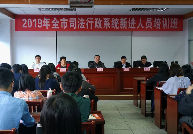 5月7日上午,梅州市司法局在市司法幹部學校舉辦“2018年度全市司法行政係統新進人員培訓班”,市局黨組書記、局長葉仁基、市局黨組成員、政治處主任邱小軍、市局政治處、辦公室負責人、司法學校宣講團全體人員及48名新進人員參加了培訓班的開班儀式。開班儀式由市局黨組成員、政治處主任邱小軍同誌主持,會上學員代表、學校代表作了表態講話,仁基局長作了開班動員講話:希望各位學員要珍惜這次學習機會,自覺遵守培訓班紀律,靜下心來,利用這段短暫的時間“充充電”、“加加油”,打起十分精神投入學習,力求通過係統學習和深入研討,有所收獲、有所提高,展現出司法行政幹部良好的精神風貌,並對培訓學員提出了要培養四個品質,在做人上下工夫,做事先做人;要樹立四個意識,努力在工作中提高自身素質的要求,最後預祝這次培訓班取得圓滿成功!