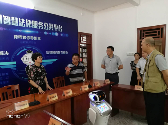 調研組先後到興寧市司法局公共法律服務中心、興寧市徑南鎮司法所、興寧市徑南鎮陂蓬村實地調研了我市基層公共法律服務平台建設及運行情況,對興寧市司法局引進全省縣級首台法律機器人“法通小博士”,運用“互聯網+大數據”打造“智慧司法”,為村民提供法律谘詢、遠程調解等法律服務給予了充分的肯定。