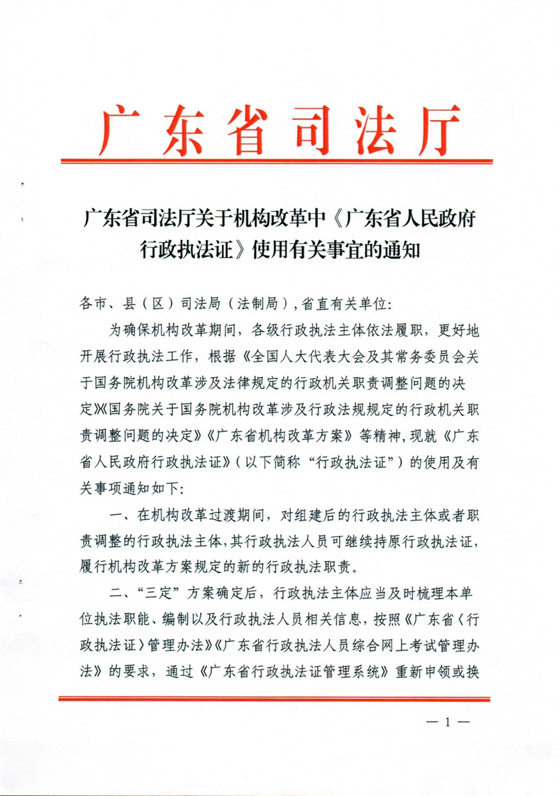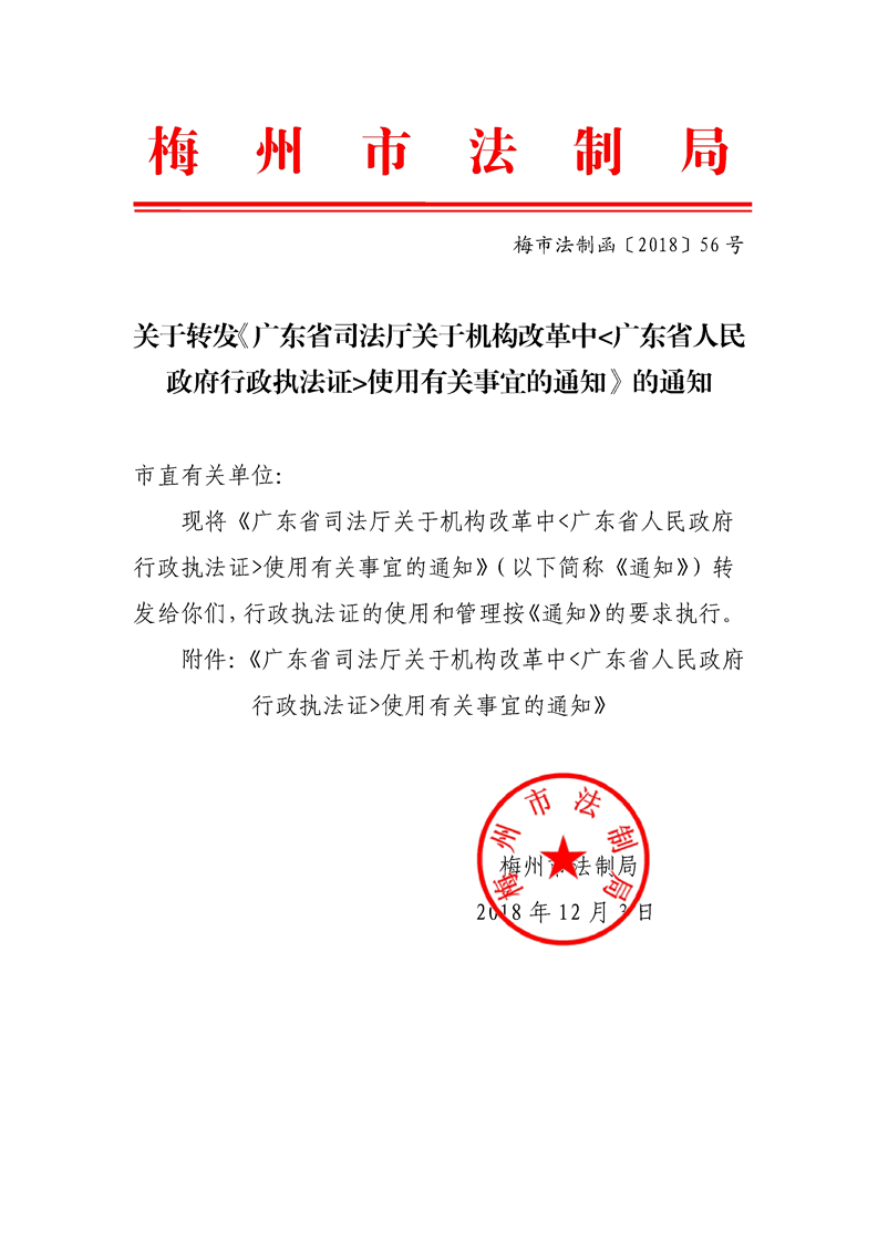 梅州市人民政府門戶網站 梅州市司法局 工作動態 關於轉發《廣東省司法廳關於機構改革中亚搏app下载安装 行政執法證使用有關事宜的通知》的通知