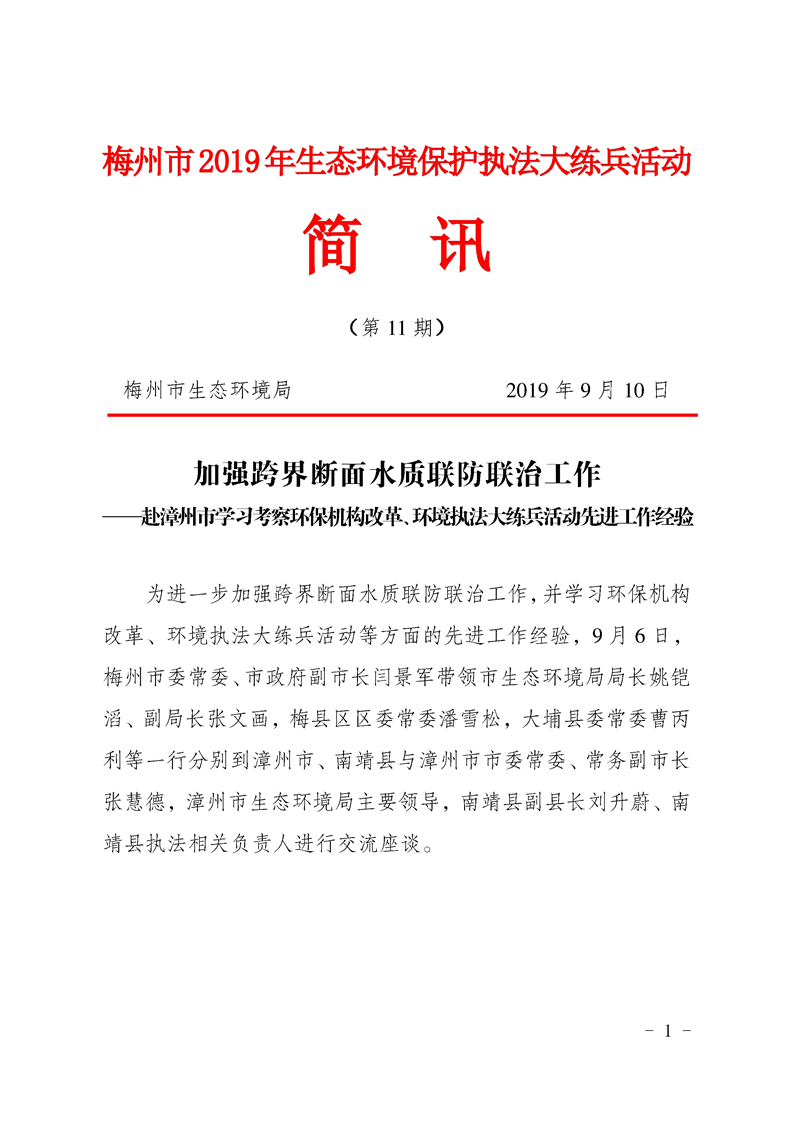 2019年梅州市生態環境保護執法大練兵活動簡訊(第11期)