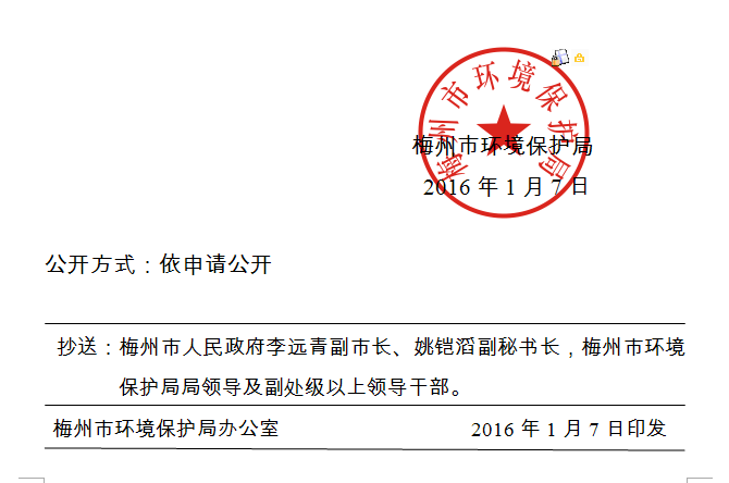 林劍(黨組成員、副局長):分管辦公室、環境監察局、市環保局廣州(梅州)產業轉移工業園環境保護辦公室、市環境信息中心、工會;負責新聞發布工作。