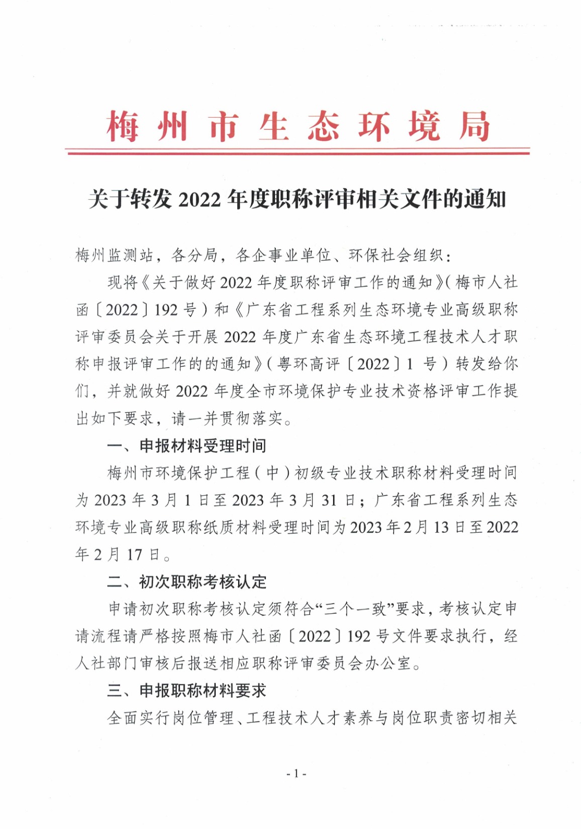 梅州市人民政府門戶網站 梅州市生態環境局 通知公告 關於轉發2022年度職稱評審相關文件的通知
