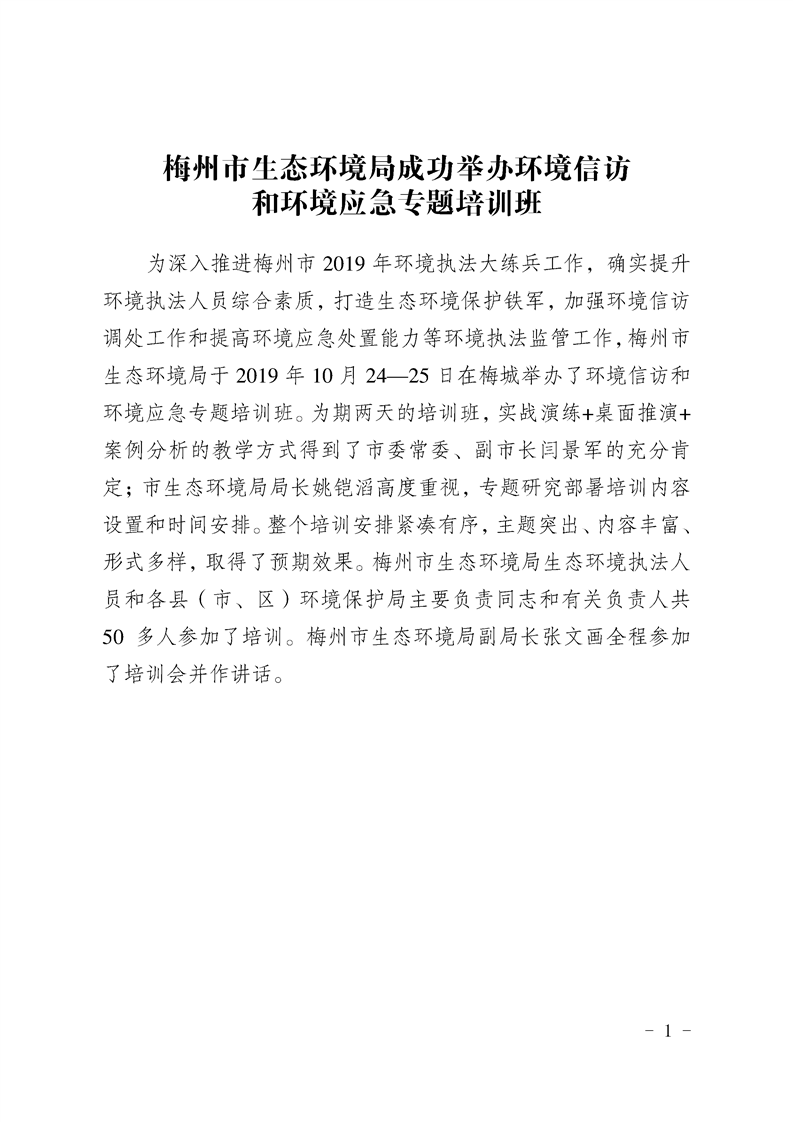 梅州市人民政府門戶網站 梅州市生態環境局 工作動態 梅州市生態環境局成功舉辦環境信訪和環境應急專題培訓班