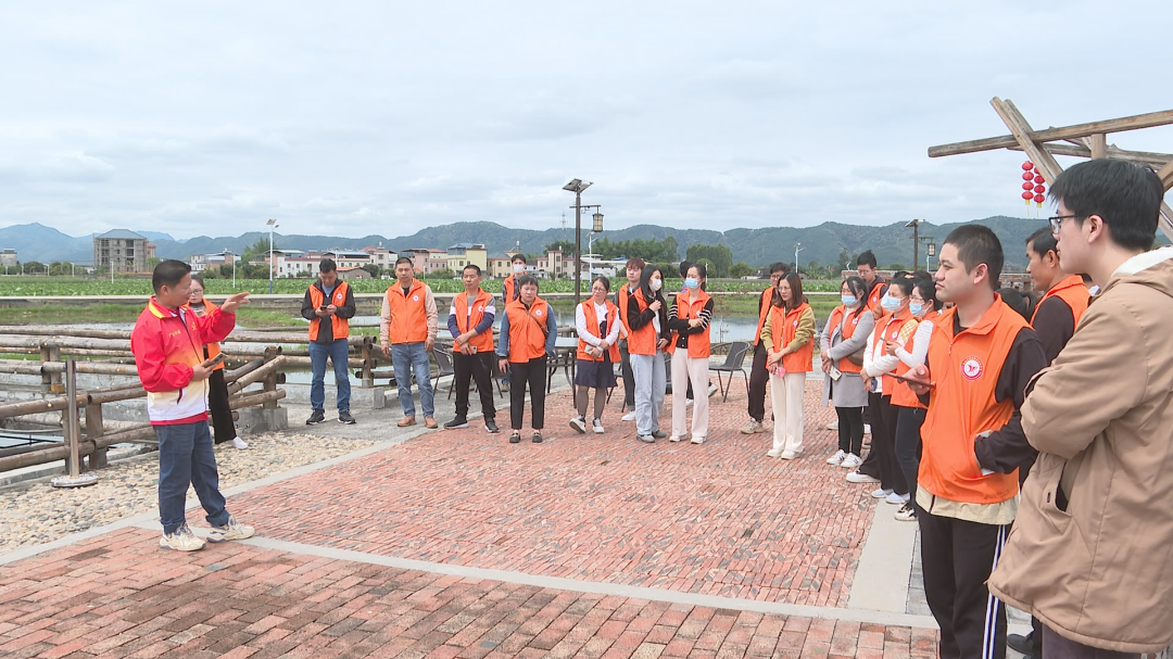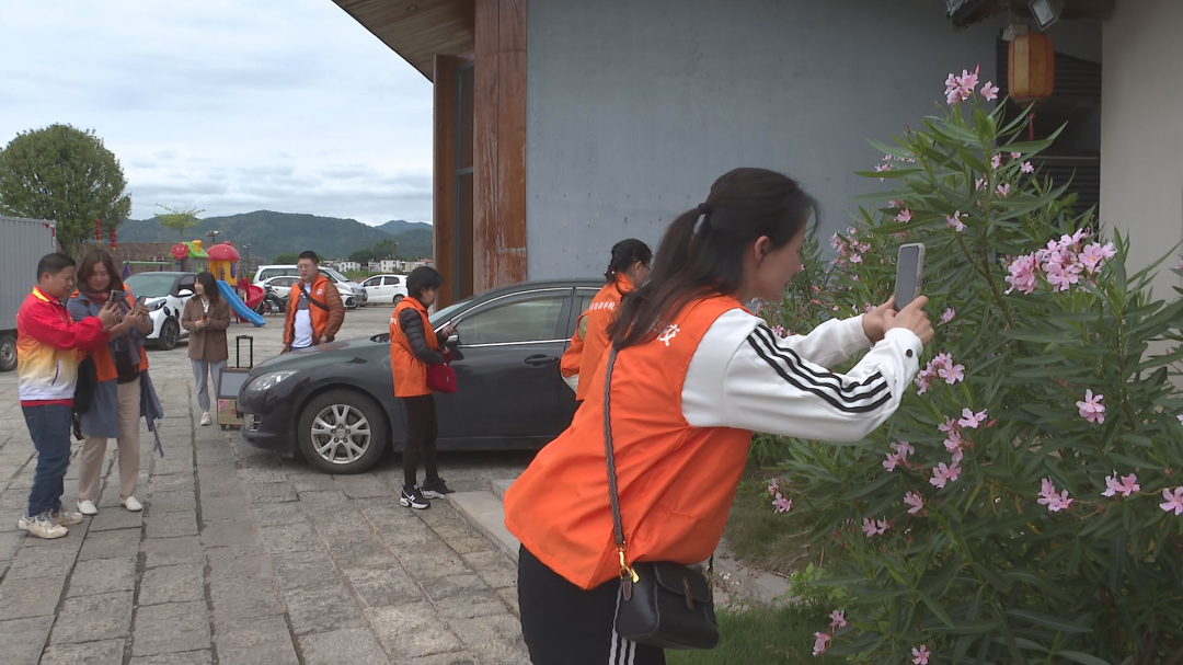 在廣東(蕉嶺)鄉建館,青青禾苗與白牆黛瓦相互映襯,參加培訓班的學員們跟隨著老師的腳步漫步其中,一邊仔細聆聽電商專家講解短視頻的拍攝與製作方法,一邊拿起手機就地取材拍攝自己的視頻素材,一場愉快的實操之旅在這裏展開……