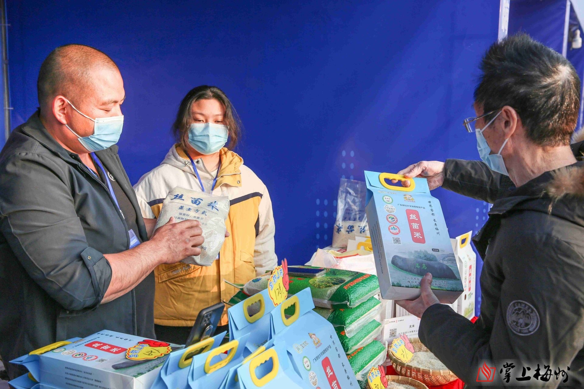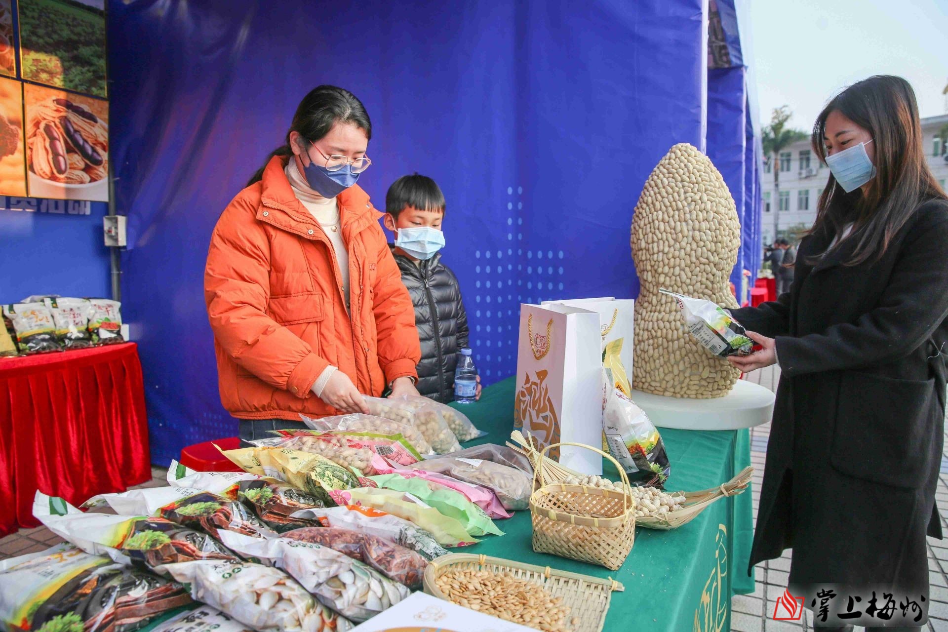 在農產品展銷區展位,各式各樣的農產品吸引市民前來選購。