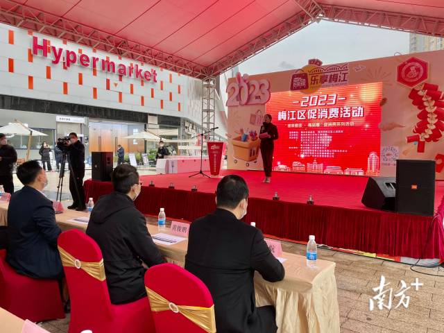 1月9日上午,2023年梅江區促消費活動啟動儀式——“客來客往·梅品惠”促消費係列活動在梅江區萬達廣場舉行。