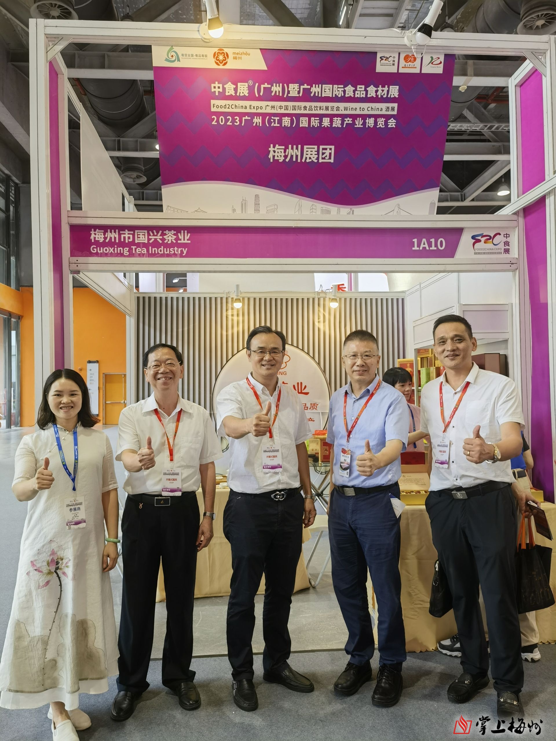 為進一步宣傳推介梅州柚、嘉應茶、客都米、興寧鴿、鹽焗食品等一大批長壽特產和“梅字號”品牌,助力梅州優質食品食材企業“走出去”,開拓粵港澳大灣區等國內國際市場,梅州市商務局(梅州市貿促支會)組織客都農創(梅州)產業發展有限公司、梅州市客係食品有限公司、梅州市臻尚食品有限公司、梅州市國興茶業、廣東十記集團有限公司、梅州市金綠現代農業發展有限公司、梅州錫從鹵班食品有限公司(廣州錫從鹵班品牌管理有限公司)、廣東省國良食品有限公司、廣東穗豐食品有限公司、廣東長樂燒酒業股份有限公司、廣東壽星食品有限公司等11家梅州企業參展中食展(廣州)。展會期間,省貿促會一級巡視員白明韶、廣州市貿促會黨組成員曾尚忠到梅州分團展位參觀指導,對梅州農副產品特色產業發展給予了充分肯定。