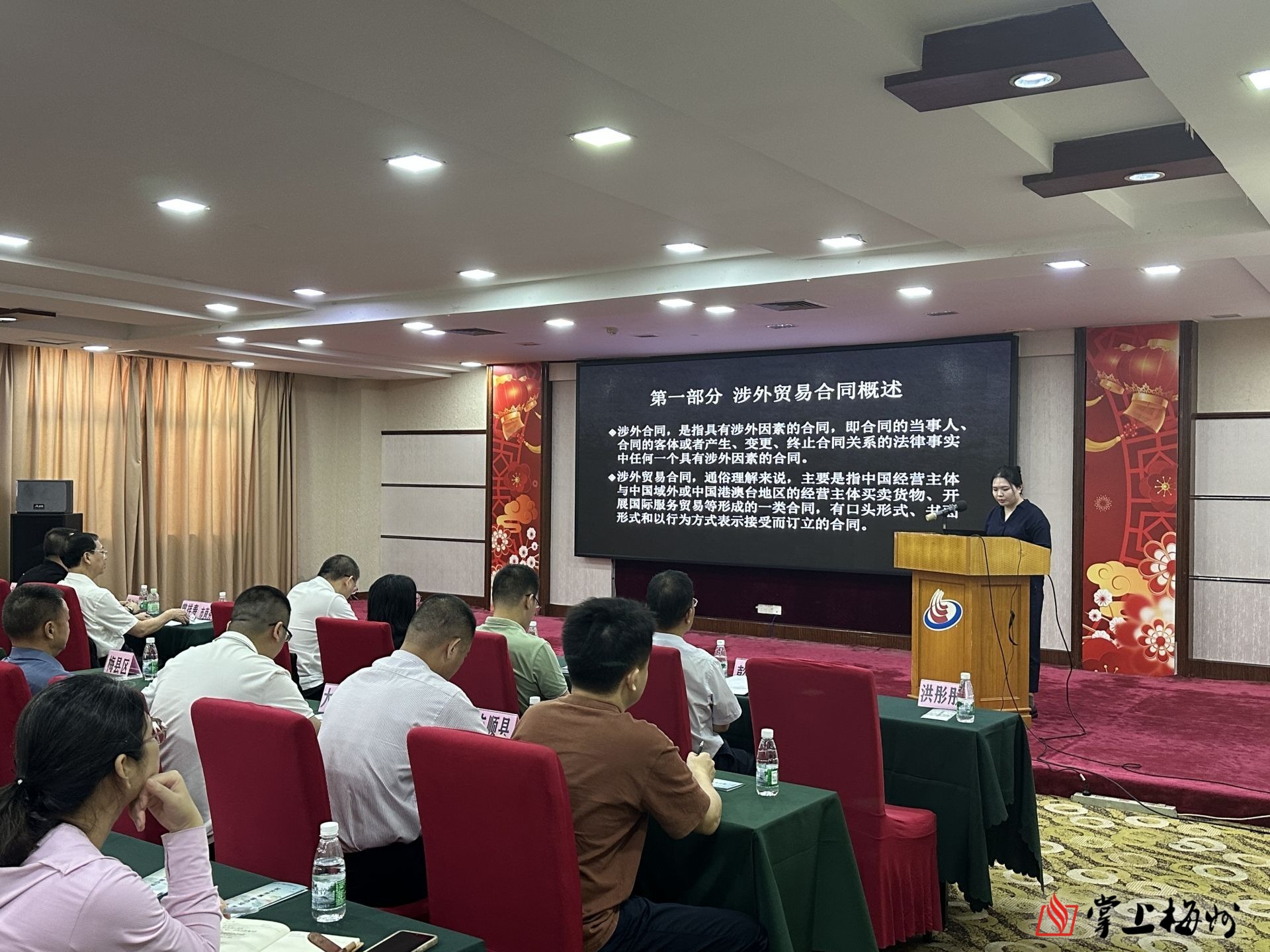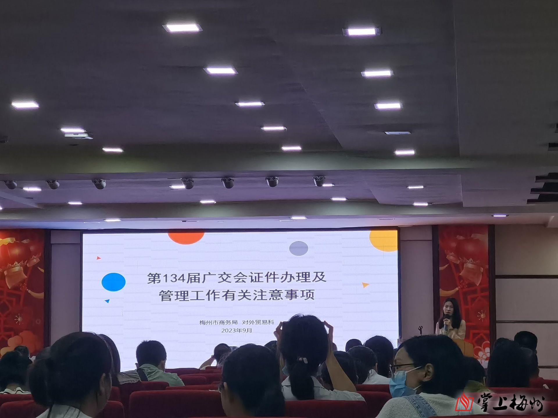 會上,來自銀行業和律師行業的專家進行了彙率風險防控知識、涉外貿易合同訂立和注意事項知識宣講;市商務局相關業務人員就第134屆廣交會有關證件辦理情況作介紹,並通報廣交會梅州分團籌備工作情況。