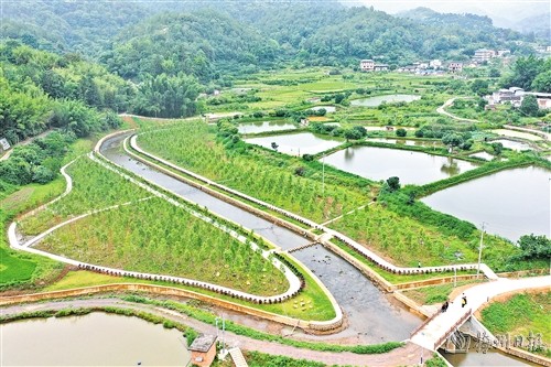 這是梅縣區南口鎮瑤上水生態清潔小流域綜合治理工程實施帶來的成效。記者了解到,該工程總投資2966.59萬元,於2022年7月開工建設,治理河道總長度約9.219公裏,治理水土流失麵積為4471.16公頃。“我們以水土流失治理、河道整治為重點,結合水環境和村莊人居環境治理,主要實施河道護岸、崩崗治理、園林綠化種植、生態景觀公園、新建機耕道路等工程措施,目前工程已基本完工,正在進行收尾工作。通過項目的實施,使流域內的水土流失得到有效治理,改善了沿河村莊的生態環境和人居生產、生活環境。”梅縣區水務局建設服務中心主任吳劍輝說。