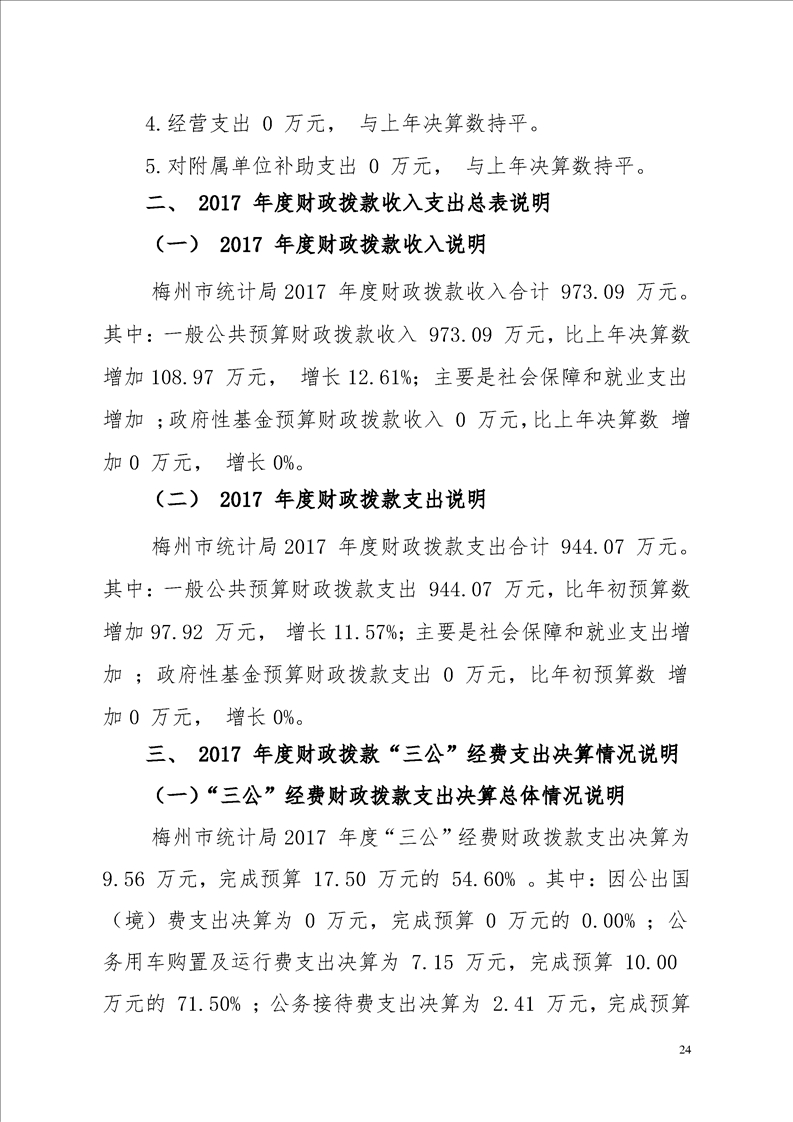 梅州市人民政府門戶網站 梅州市統計局 部門預決算和三公經費預決算 2017年梅州市統計局部門決算