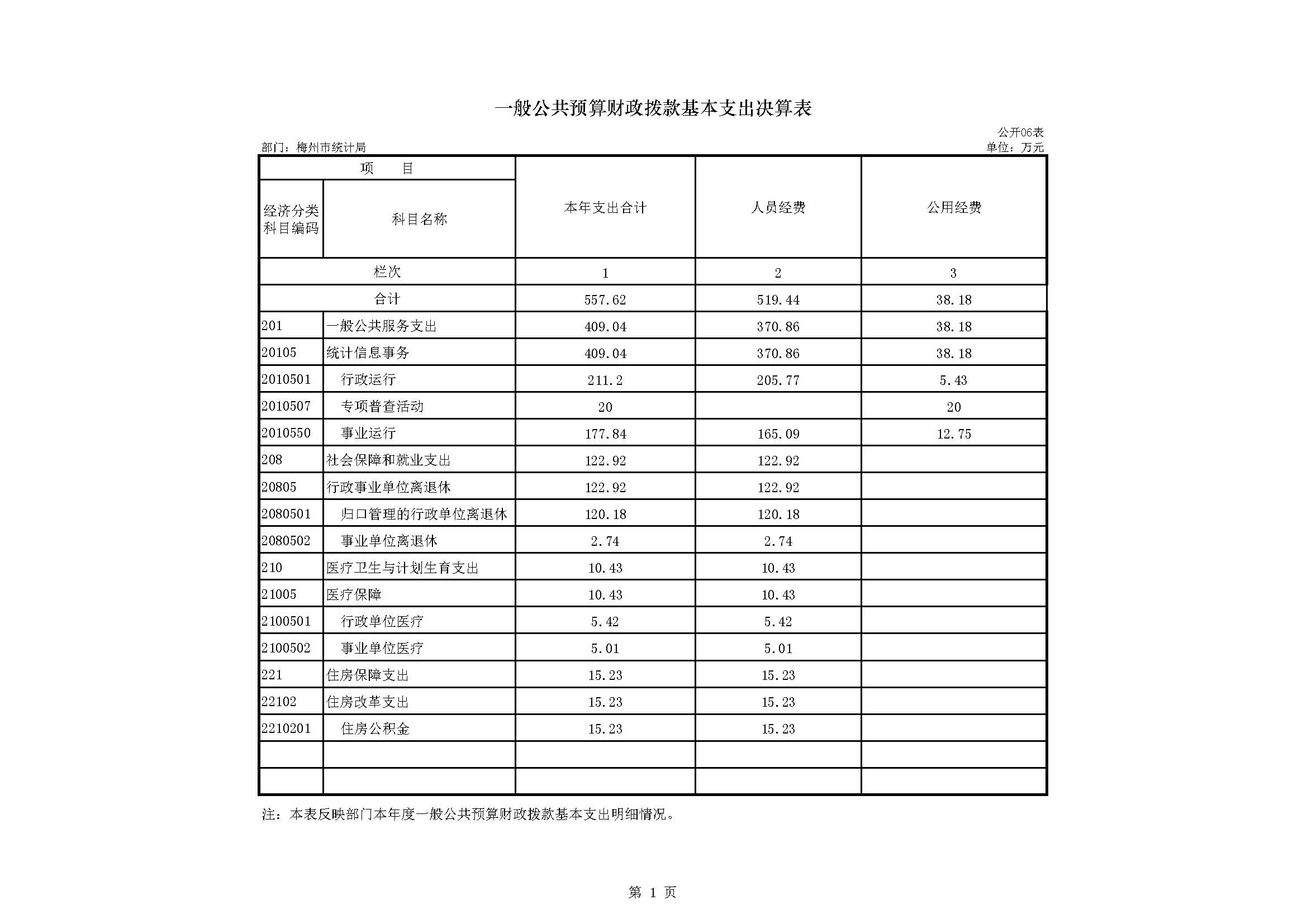 梅州市人民政府門戶網站 梅州市統計局 部門預決算和三公經費預決算 2014年一般公共預算財政撥款基本支出決算表
