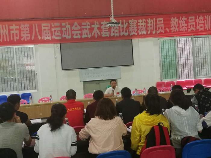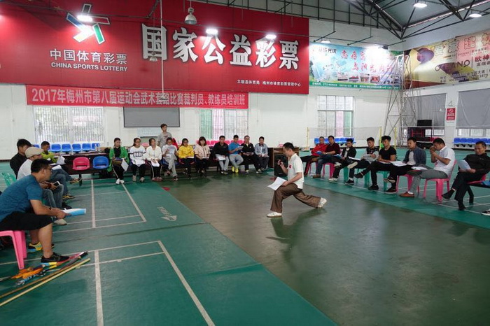 2017年梅州市武術套路教練員、裁判員培訓班昨日在豐順縣舉行,來自嘉應學院體育學院以及各縣(市、區)的近30名學員參加了培訓。 培訓班請來了集南拳世錦賽與全運會冠軍於一身的陳侖老師及嘉應學院體育學院的許曉容副教授授課,老師傾囊相授,學員們如饑似渴。學習班內容包括規則學習、統一評分標準、臨床實踐等。 至此,拳擊、跆拳道、武術套路等3個培訓班圓滿結束。