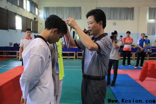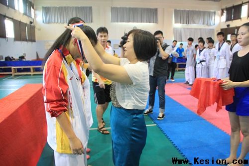 市體育局朱春粦副局長為跆拳道冠軍頒獎
