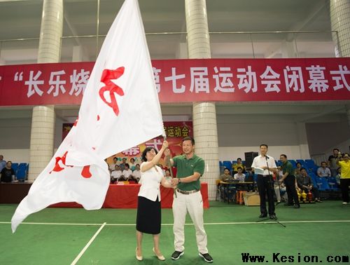 8月20日閉幕式上,陳麗霞副市長向梅縣區移交第八屆市運會會旗