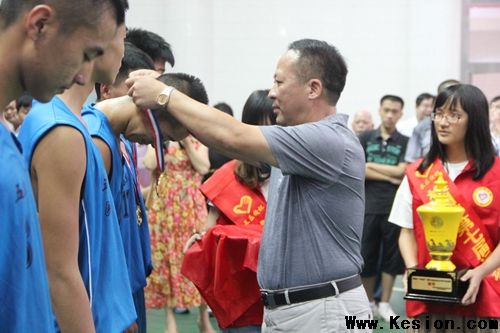 市體育局陳建新局長為冠軍梅縣區隊頒獎