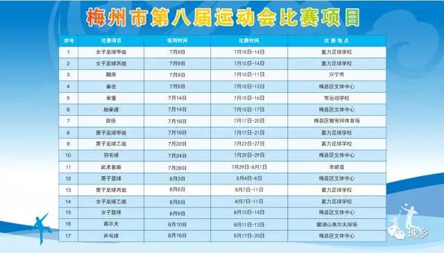 6月28日梅州市第八屆運動會將在梅州市梅縣區文體中心隆重開幕。四年一屆的梅州市運動會是我市最大的體育盛會,為了在此次比賽中取得最好的成績,來自各縣(市、區)的運動員早已開始緊鑼密鼓的訓練!現距離梅州市第八屆運動會開幕還有32天,讓我們一同期待運動員們在比賽中的精彩表現!