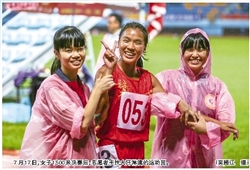 7月17日,女子1500米決賽後,誌願者手扶大汗淋漓的運動員。(吳騰江 攝)