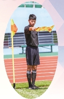 7月26日,比賽中頭頂烈日認真執法的裁判員(吳騰江 攝)