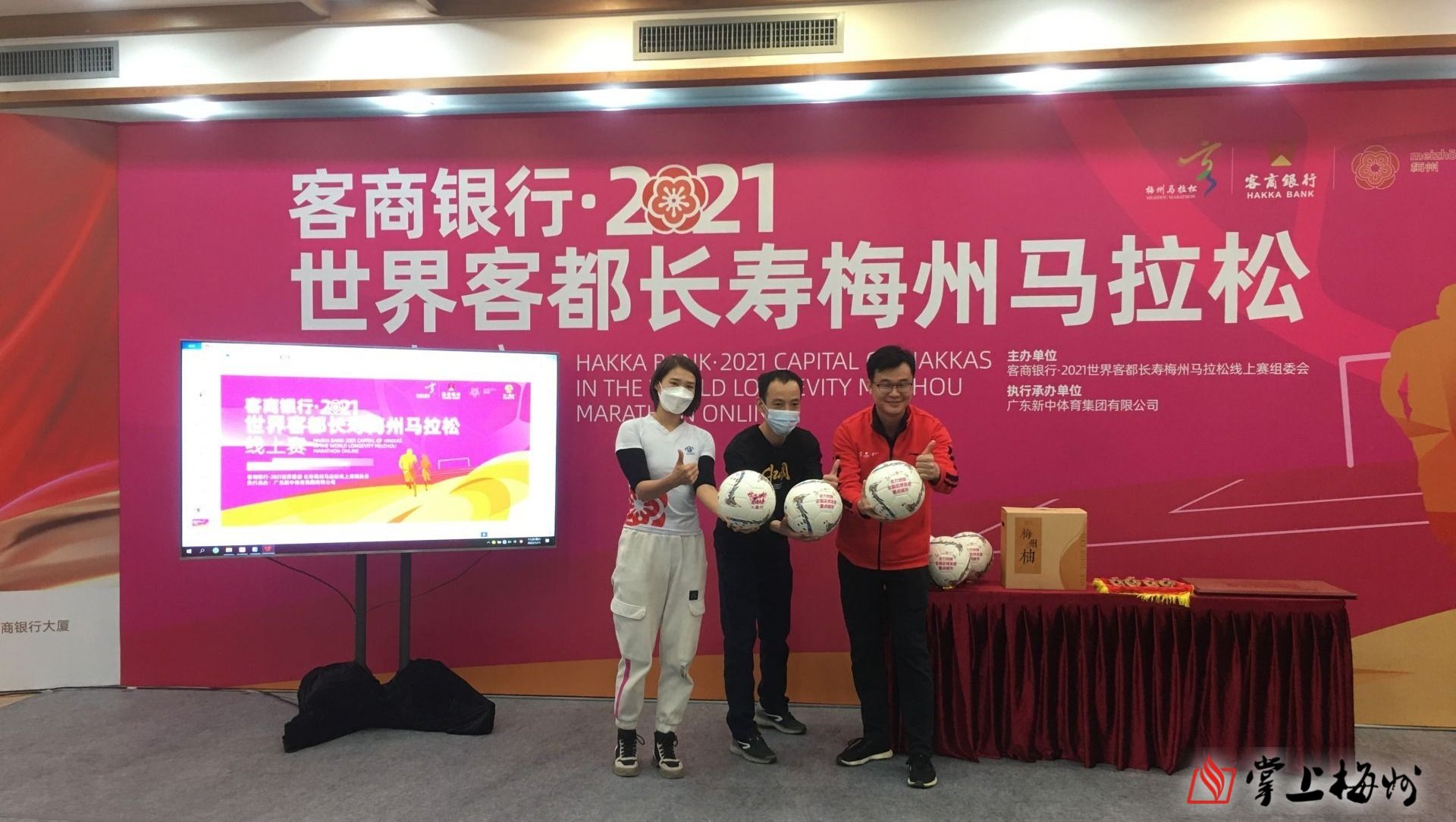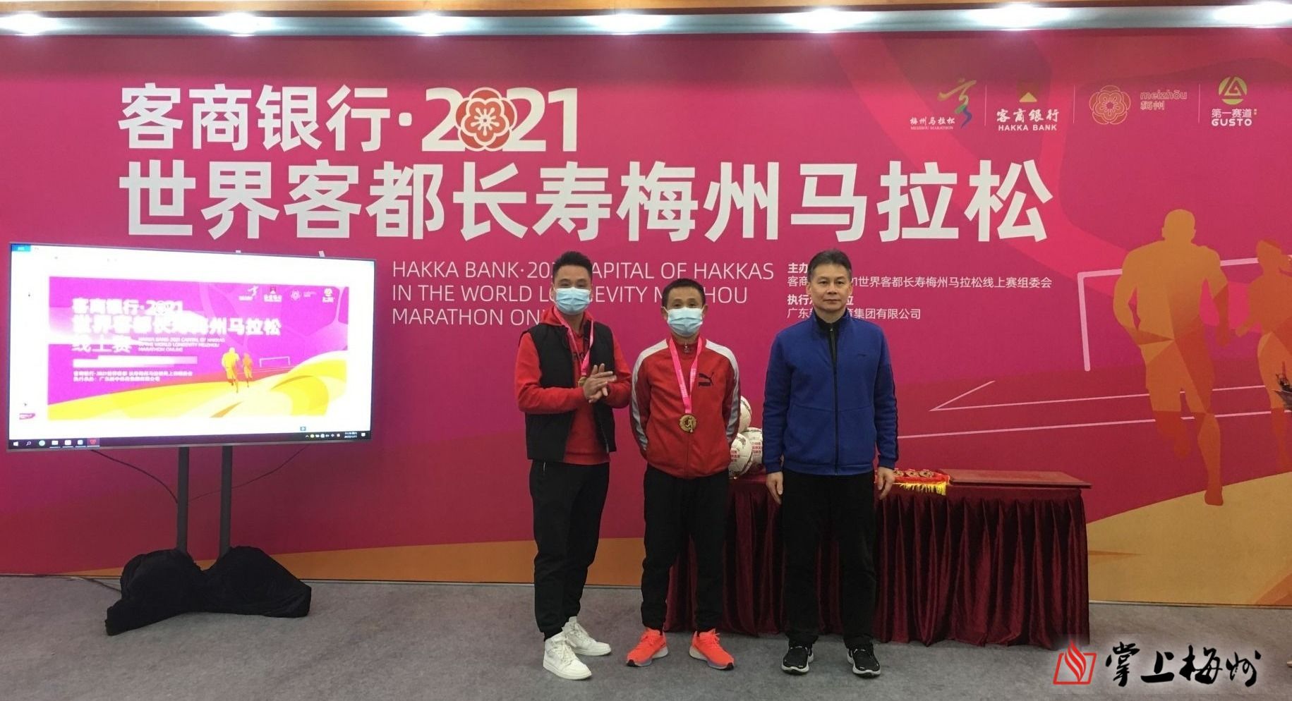 月15日上午,客商銀行·2021世界客都長壽梅州馬拉鬆線上賽抽獎儀式暨頒獎儀式在梅州市梅縣區文體中心舉行。現場抽出了本屆梅馬線上賽的總計1700份獎品,並頒發給參與本屆線上賽的在梅跑友代表,同時,本次儀式發布了本屆梅馬線上賽的大數據報告,一萬餘名跑友在雲端“親梅逐馬”,跑出了累計可繞地球近12圈的距離。