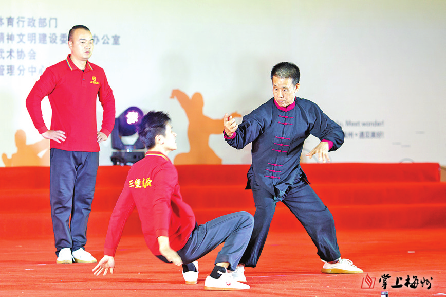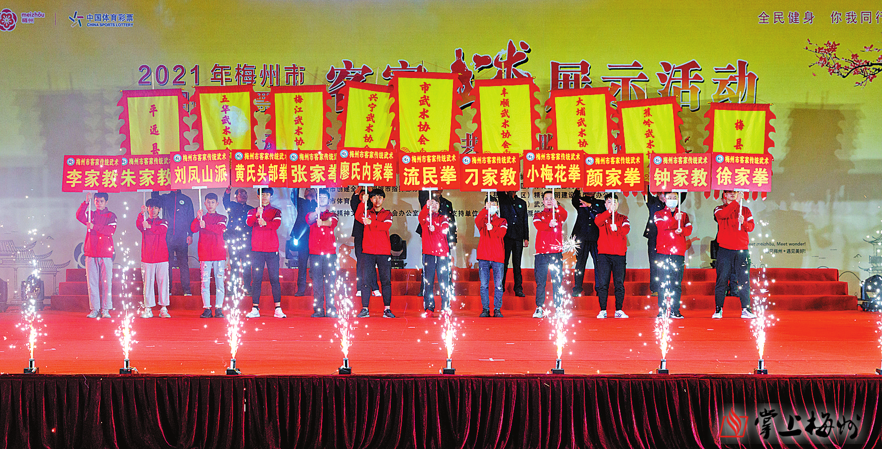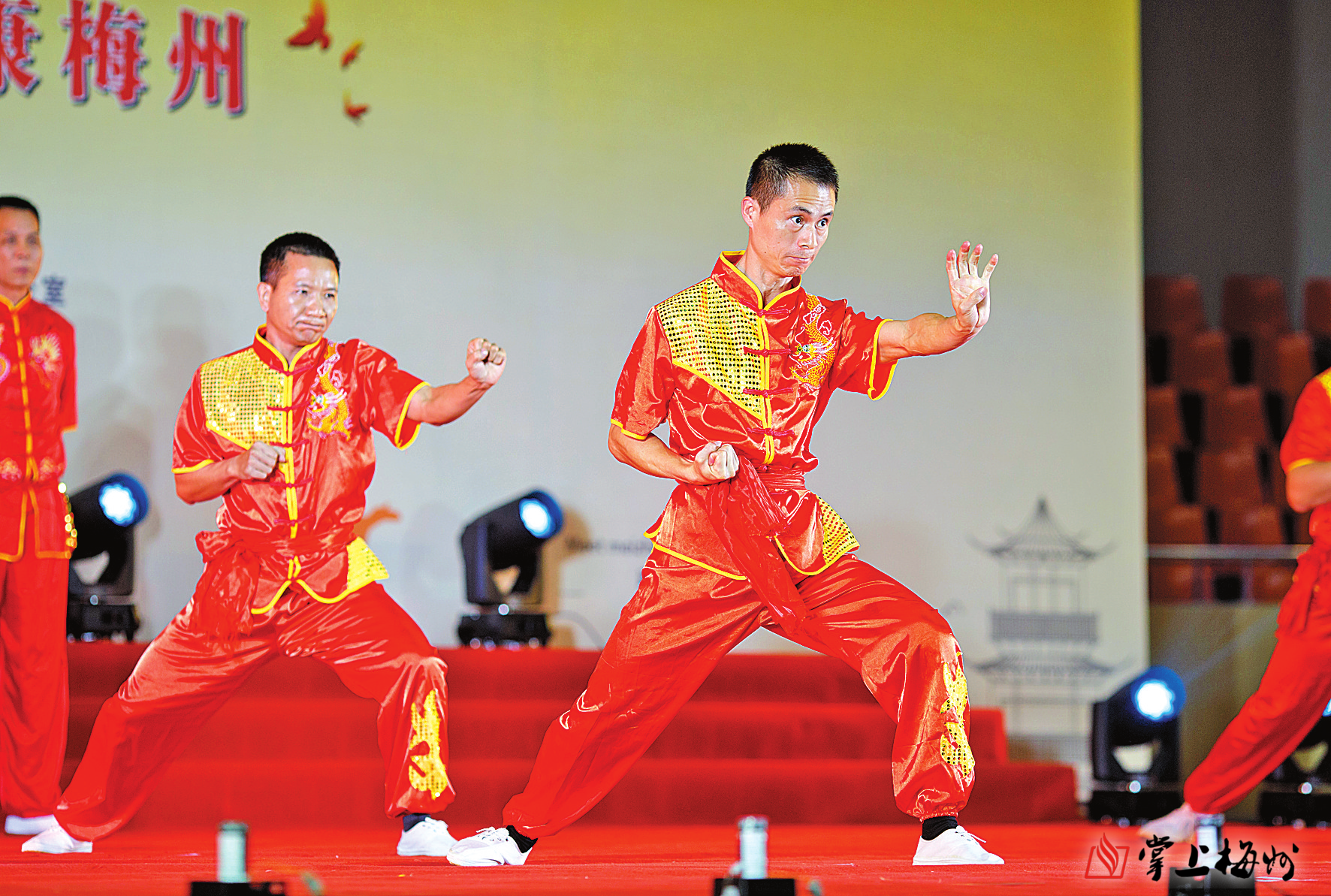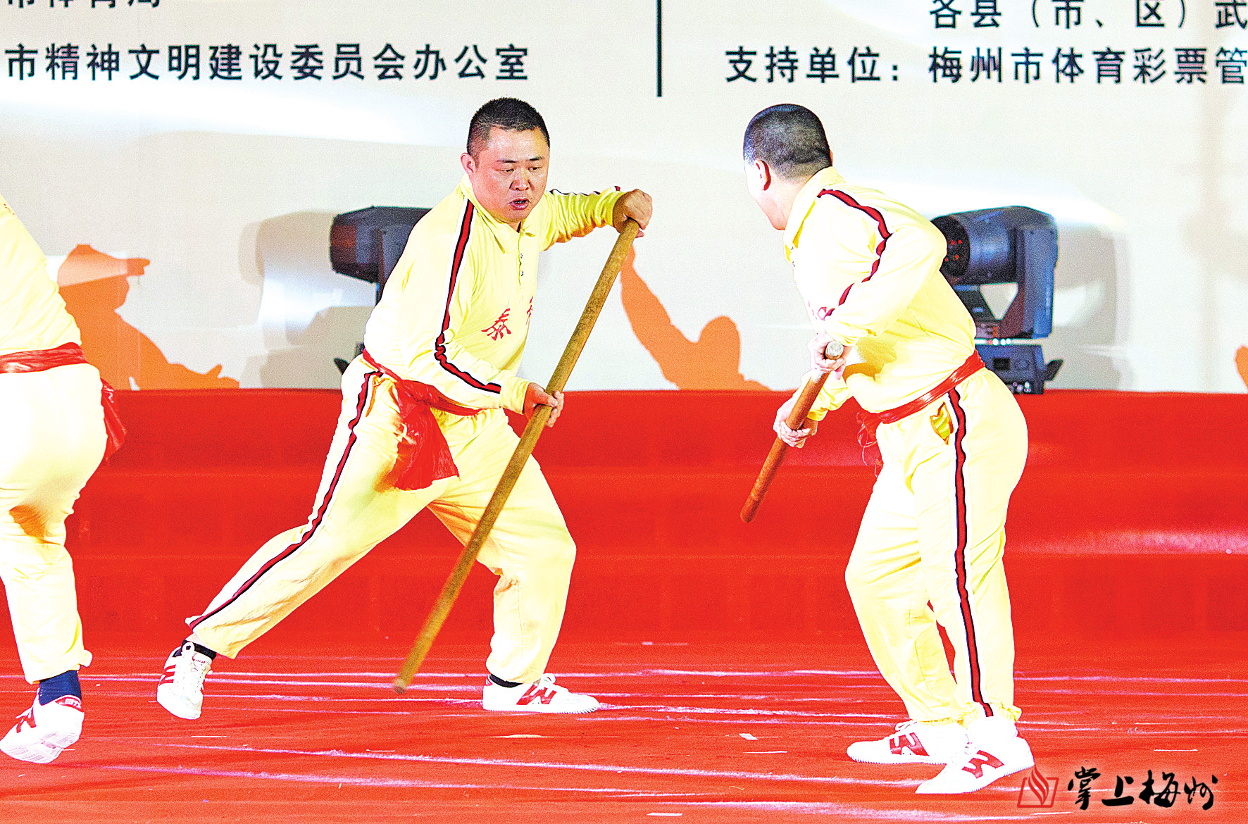 在展示環節,梅江區刁家教,梅縣區廖氏內家拳,興寧市朱家教、李家教、小梅花拳、顏家拳、鍾家教、刁家教,平遠縣黃氏頭部拳,蕉嶺縣張家拳、張家棍,大埔縣劉鳳山派,豐順縣徐家拳,五華縣流民拳、李家教等展示項目逐一登台亮相,一招一式,或剛猛有力、虎虎生威,或行雲流水、張弛有度,展現了客家武術的博大精深和蓬勃生命力,精彩的展示贏得了現場觀眾的熱烈掌聲。