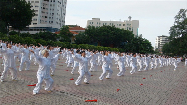 參加這次健身展示活動的有梅州市太極拳協會會員、陳家溝功夫學校、粵東少林武術學校的師生和市、區有關單位的一些幹部職工、嘉應學院、城區中、小學生等共800多人。其中:最大年齡的86歲,最小的不足10歲。他們分別展演了健身氣功、太極拳、劍、扇、刀、少林武功、柔力球、健身秧歌等11個精彩節目,形式多樣的表演吸引了眾多市民,觀眾不斷響起熱烈的掌聲。