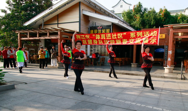 1月21日上午,來自梅江區江南街道梅南、梅江、怡樂、紅光、白馬、中心壩等社區的9支健身隊伍,在歸讀公園逢甲書屋進行“社區健身隊伍迎新春交流展示”活動。活動中,各支健身隊伍輪番上場,展示了廣場舞、健身操、健身氣功、太極係列等各種健身技能,為社區增添了濃濃的節日氣氛。 據了解,這次活動是由梅江區社會體育指導員協會和梅江區江南街道家庭綜合服務中心聯合舉辦的梅江區“體育進社區”係列活動,旨在營造熱烈圓滿、祥和喜慶、安定和諧的社區新年氛圍,同時為全民健身運動在社區中的廣泛開展起到宣傳、推動作用。