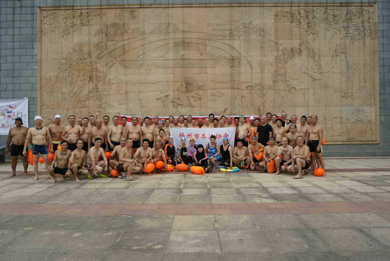 2017年5月4日,由梅州市冬泳協會精心策劃和準備,組織近百名遊泳愛好者參加迎“五四”暢遊梅江活動。此次活動參與者年齡最大的80歲,最小的14歲,其中年齡最高80歲的阿梁伯陪同遊完了全程2公裏多的泳程,敬業精神值得大家點讚,同時活動也得到了藍天救援隊的無私保駕護航,通過大家共同努力使活動取得圓滿成功。
