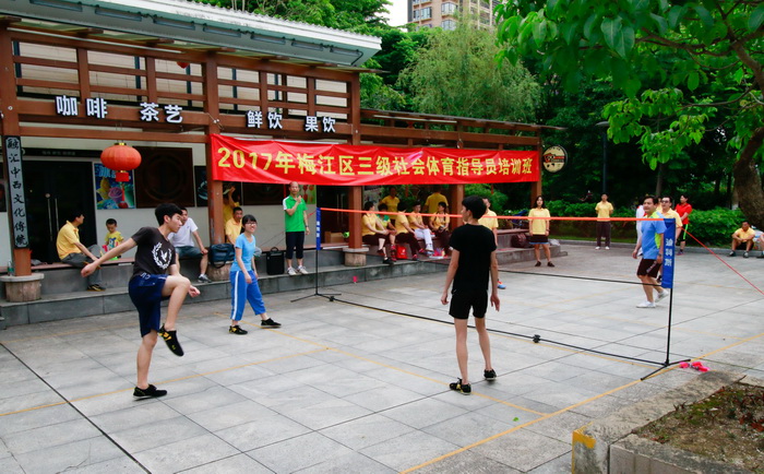 5月20日,由梅江區體育局主辦、梅江區社會體育指導員協會承辦的2017年梅江區毽球三級社會體育指導員培訓班在歸讀公園風眠畫苑開班,梅江區體育局李文瓊副局長到場指導並講話。本次培訓班采取老師講課和學員實操相結合的方式,首先由嘉應學院體育學院鍾青教授對毽球的基本種類、基本技術、一般訓練方法以及毽球競賽規則進行了講解。然後,嘉應學院毽球隊與由參訓學員組成的歸讀公園毽球隊進行了表演賽。來自梅江區轄區的毽球愛好者50多人參加了培訓。