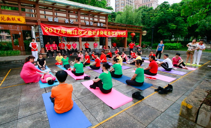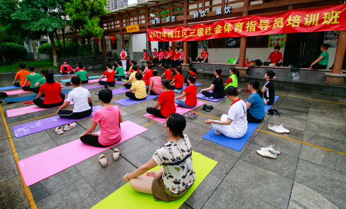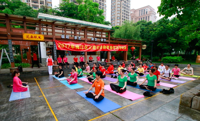 6月3日,由梅江區體育局主辦、梅江區社會體育指導員協會承辦的2017年梅江區瑜伽三級社會體育指導員培訓班在歸讀公園風眠畫苑開班,由嘉應學院體育學院劉綺紅副教授擔任培訓班老師,來自梅江區各鄉鎮、街道的瑜伽愛好者50多人參加了培訓。