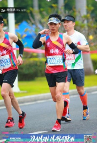 馬進榮,協會副會長,嘉應學院教授,本次廈馬成績 3小時23分,獲得年齡組第一名,全場女子66名,並創造個人最好成績(PB)。