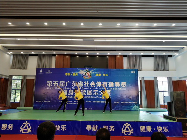 2019年4月17-18日,由廣東省體育局主辦,河源市文化廣電旅遊體育局、廣東省社會體育指導員協會承辦的第五屆廣東省社會體育指導員健身技能展示大賽在河源市隆重舉行。