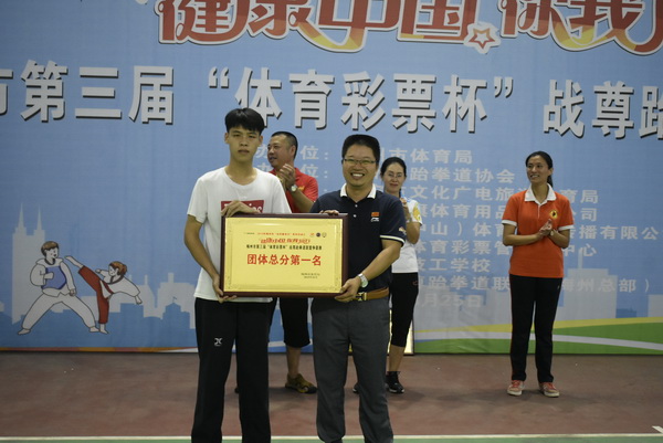 8月24日下午,梅州市跆拳道協會在興寧市技工學校體育館舉行2019年梅州市第三屆“體育彩票杯”戰尊跆拳道聯盟爭霸賽,經過一天的激烈角逐,圓滿結束各項比賽。本次比賽共有11支隊伍,共239名運動員參加,獲得團體總分第一名的是平遠縣體校跆拳道代表隊。在比賽中,運動員們用跆拳道禮儀 、廉恥、 忍耐、 克己、頑強拚搏、 百折不屈的精神,為大家呈現一場場精彩的賽事。