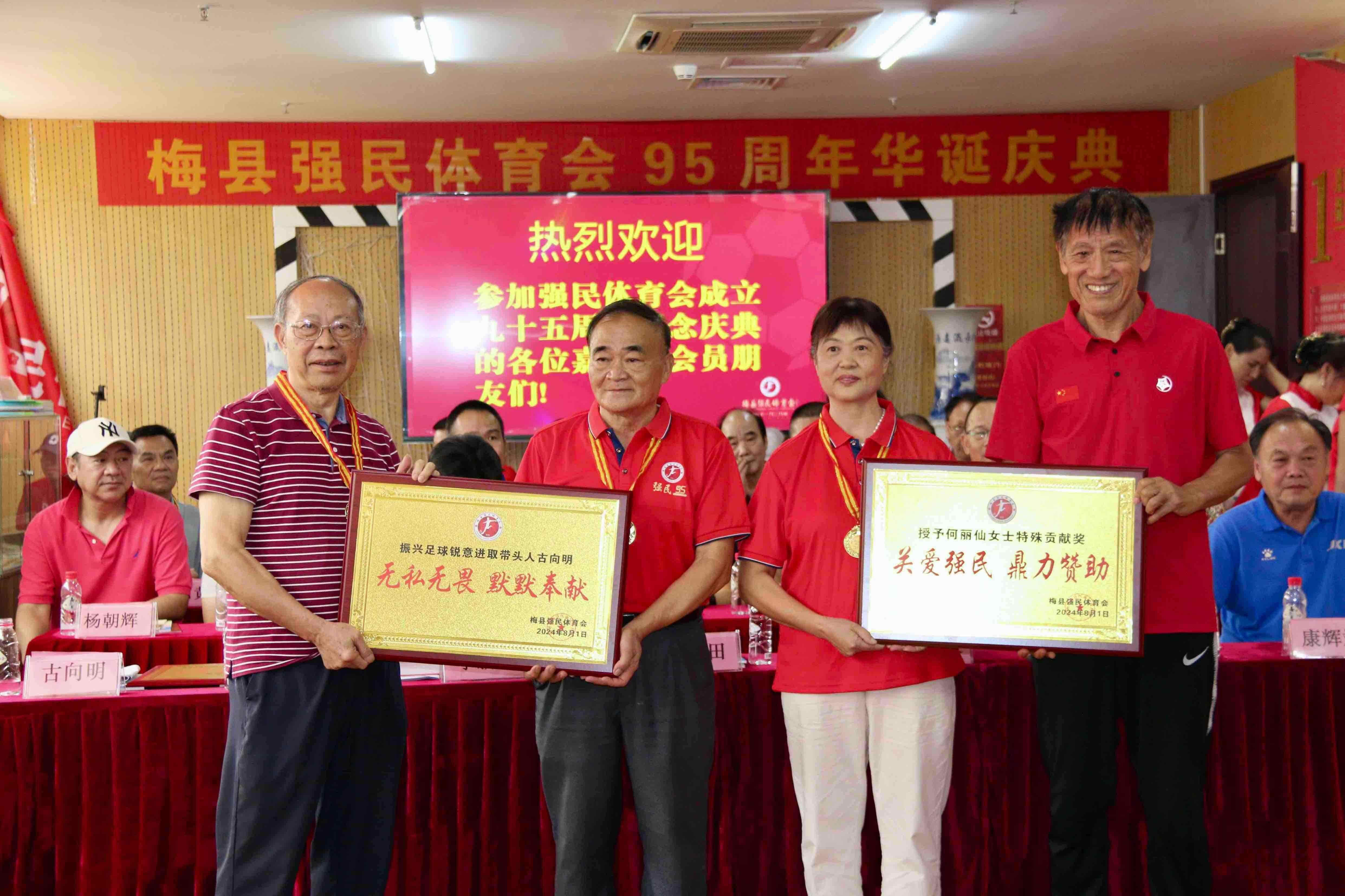 8月1日,慶祝梅縣強民體育會成立95周年慶典在梅州足球公園強民大樓舉行。中國足協原副主席董良田,梅州市關工委主任何正拔,梅州市體育局副局長李新海,梅州市榮譽市民李有權,贛州市足協常務副主席康輝斌,梅州市關工委常務副主任陳林榮,梅縣強民體育會會長古向明參加慶典活動。