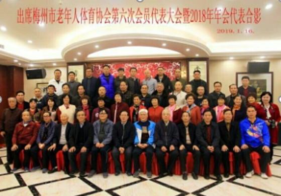 梅州市老年人體育協會第六次會員代表大會暨2018年年會於2019年1月16日上午在梅州市梅花灣酒店一樓會議廳舉行。 梅州市老年人體育協會主席劉廣新傳達全省老體協工作會議精神並作梅州市老體協2018年工作總結,布置2019年工作任務,對市老體協五年來工作進行了回顧。