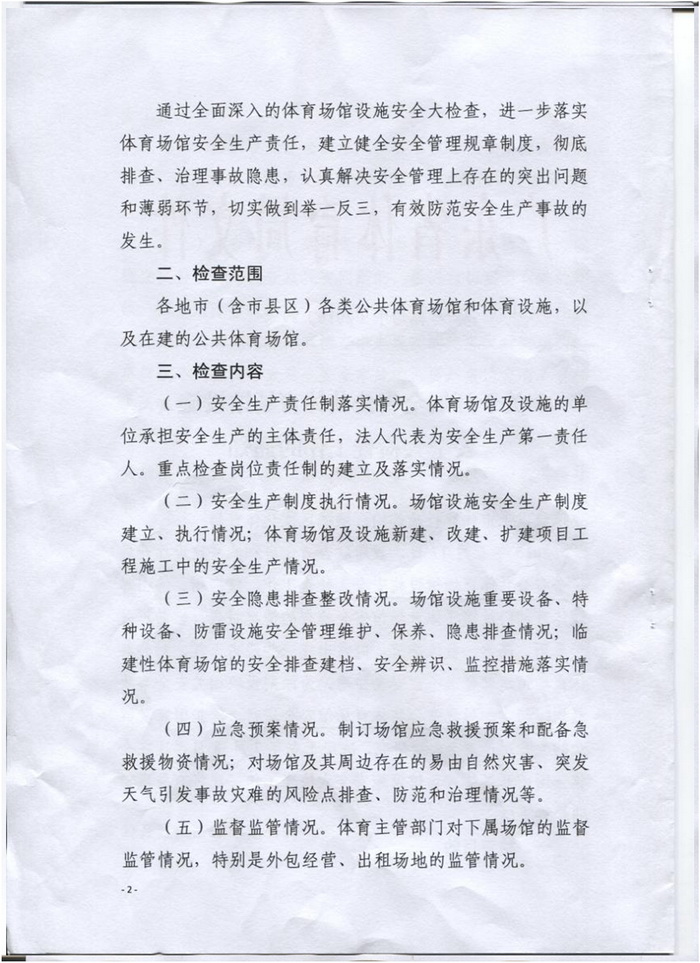 轉發省體育局關於開展全省體育場館設施安全大檢查工作的通知