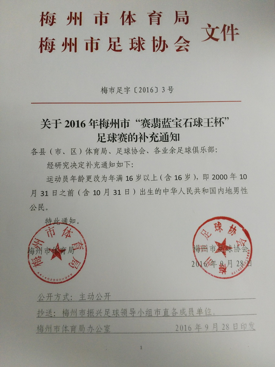 梅州市人民政府門戶網站 梅州市體育局 通知公告 關於2016年梅州市“賽翡藍寶石球王杯”足球賽的補充通知