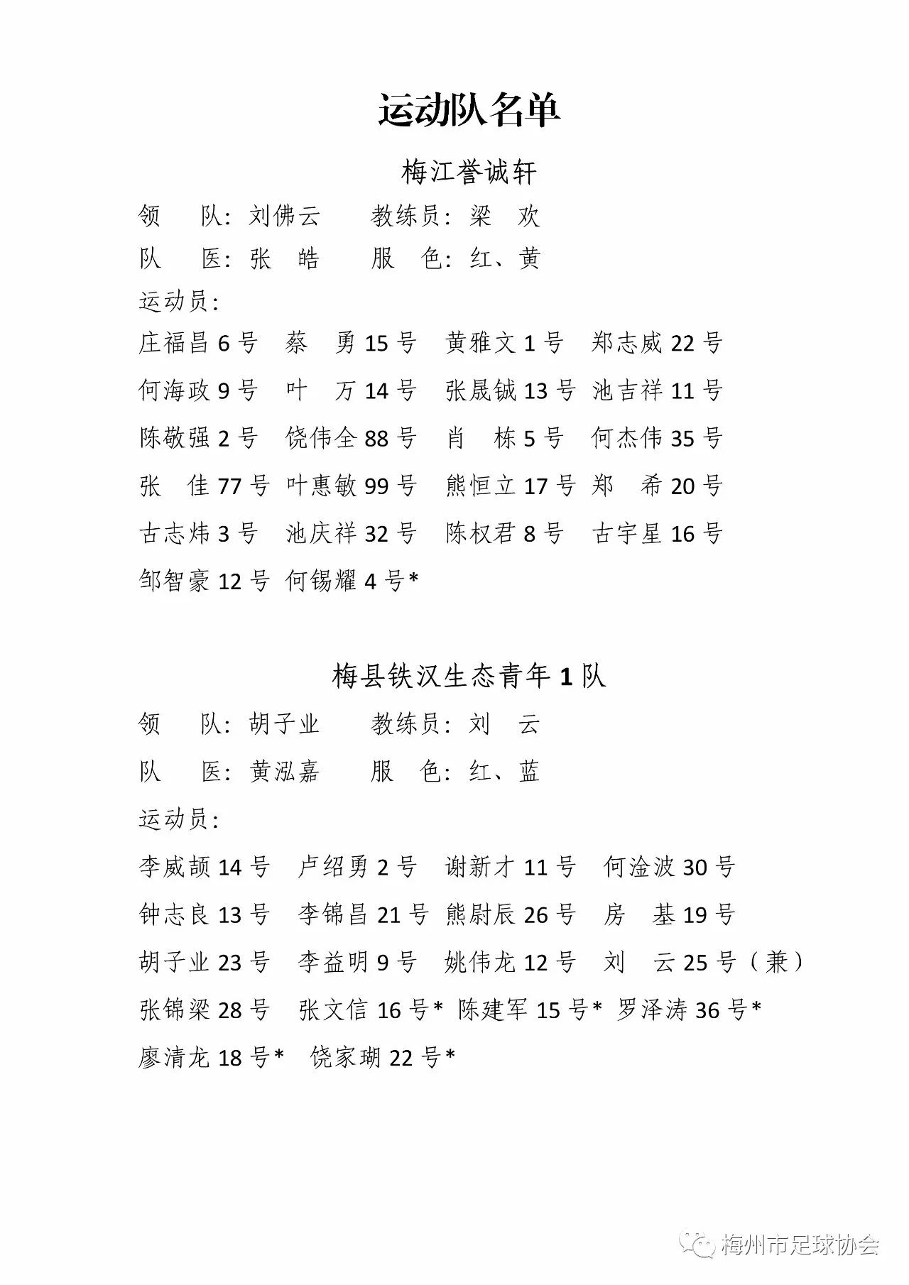 2017年梅州市“賽翡藍寶石球王杯”足球賽運動員名單公示