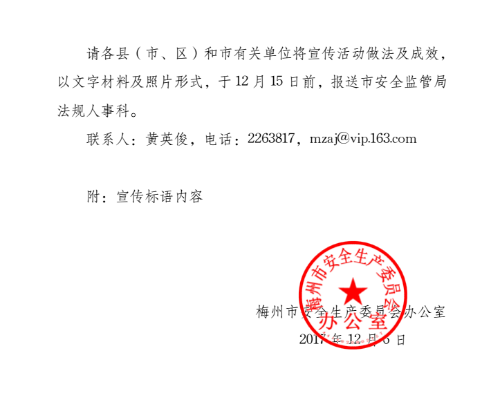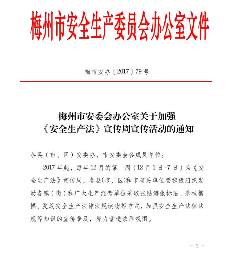 梅州市人民政府門戶網站 梅州市體育局 通知公告 梅州市安委會辦公室關於加強 《安全生產法》 宣傳周宣傳活動的通知